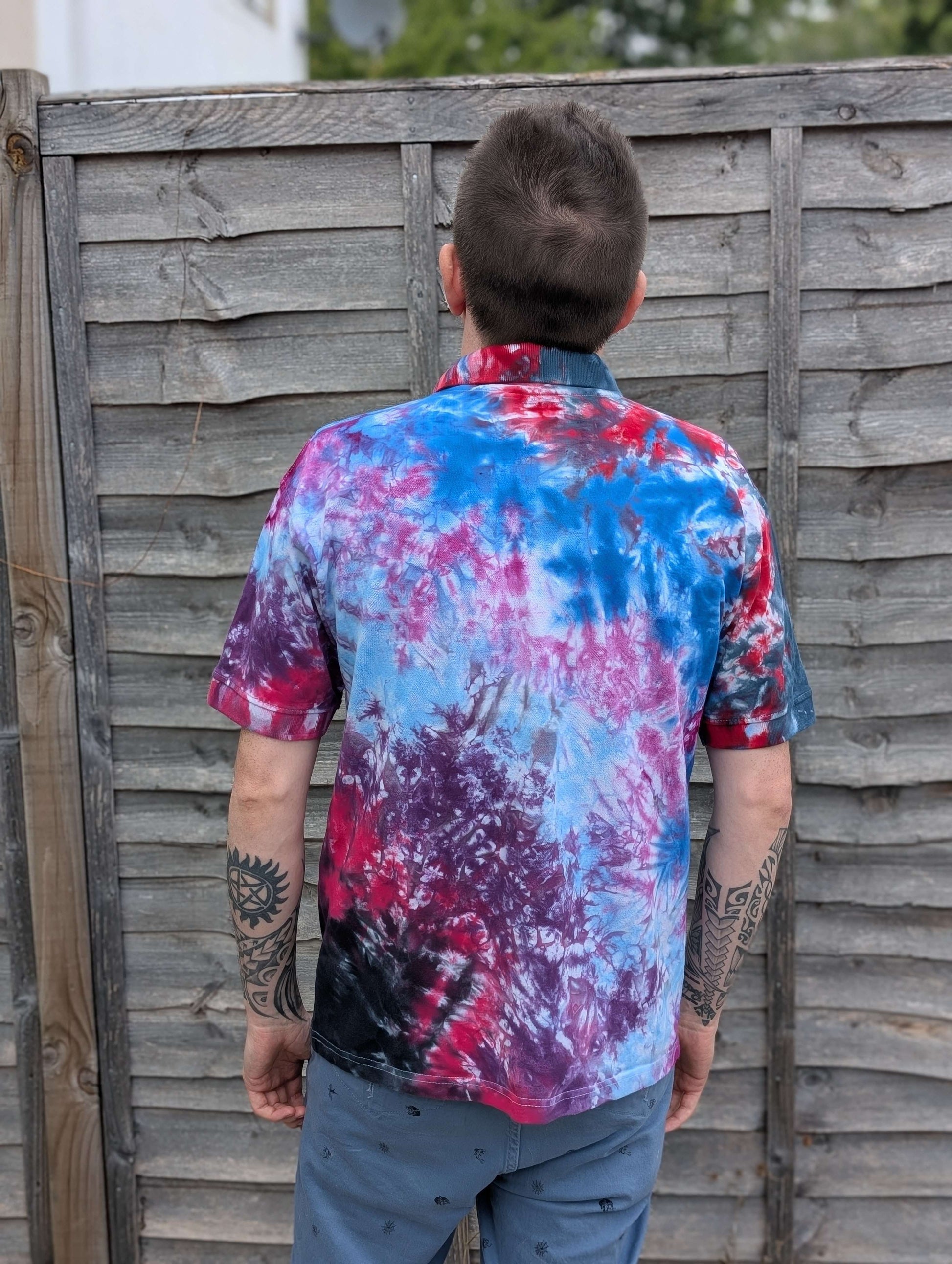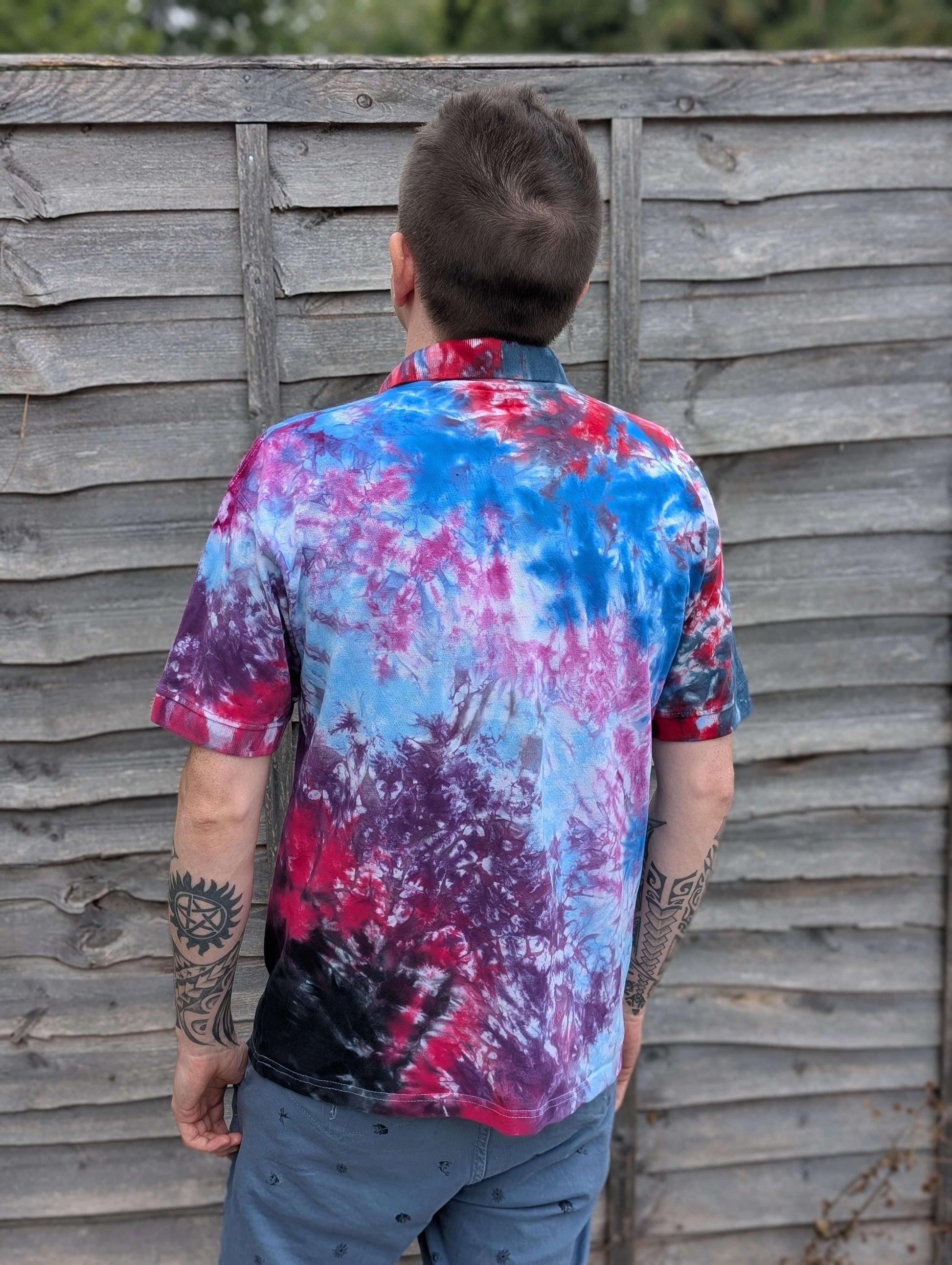 An example of our linen shirt with Dark Rainbow Tie-Dye