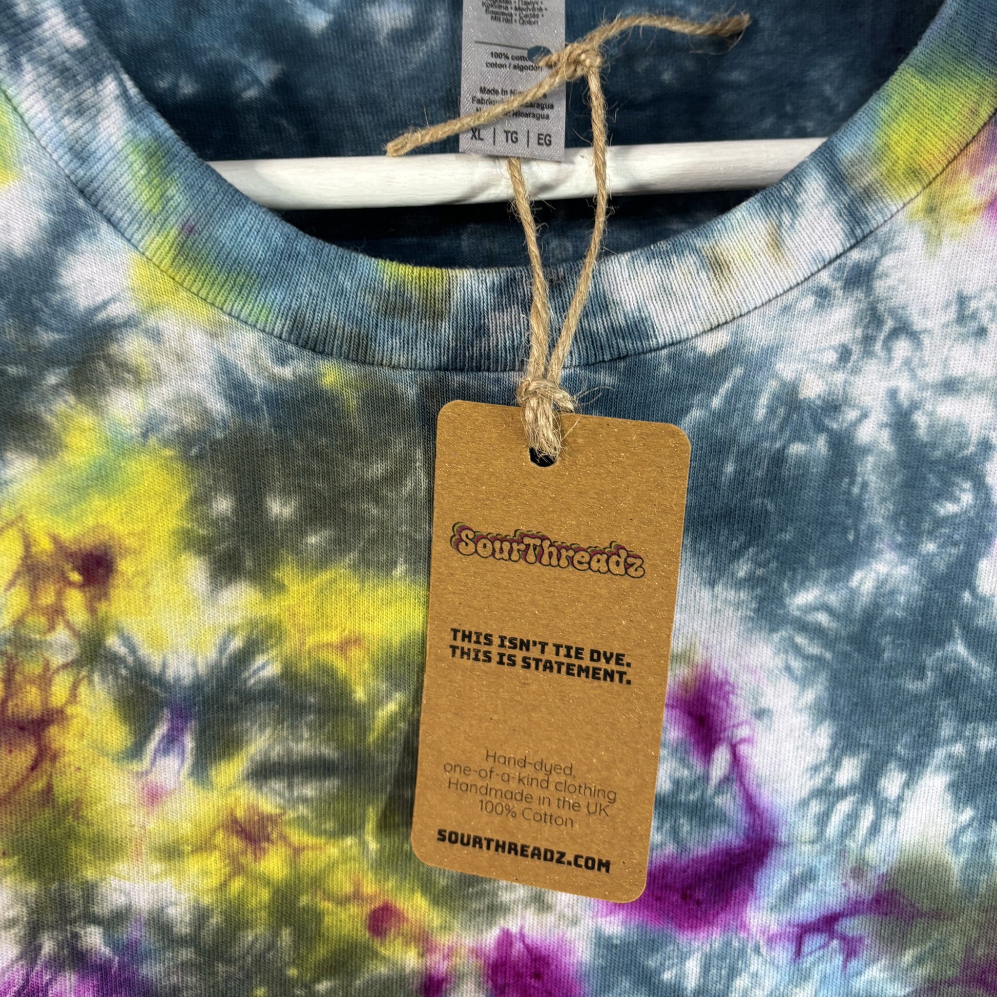 One-off SourThreadz T-Shirt  — Made with 100% cotton, bold, breathable, hand-dyed with fibre reactive dyes for ever-lasting vibrancy.Â