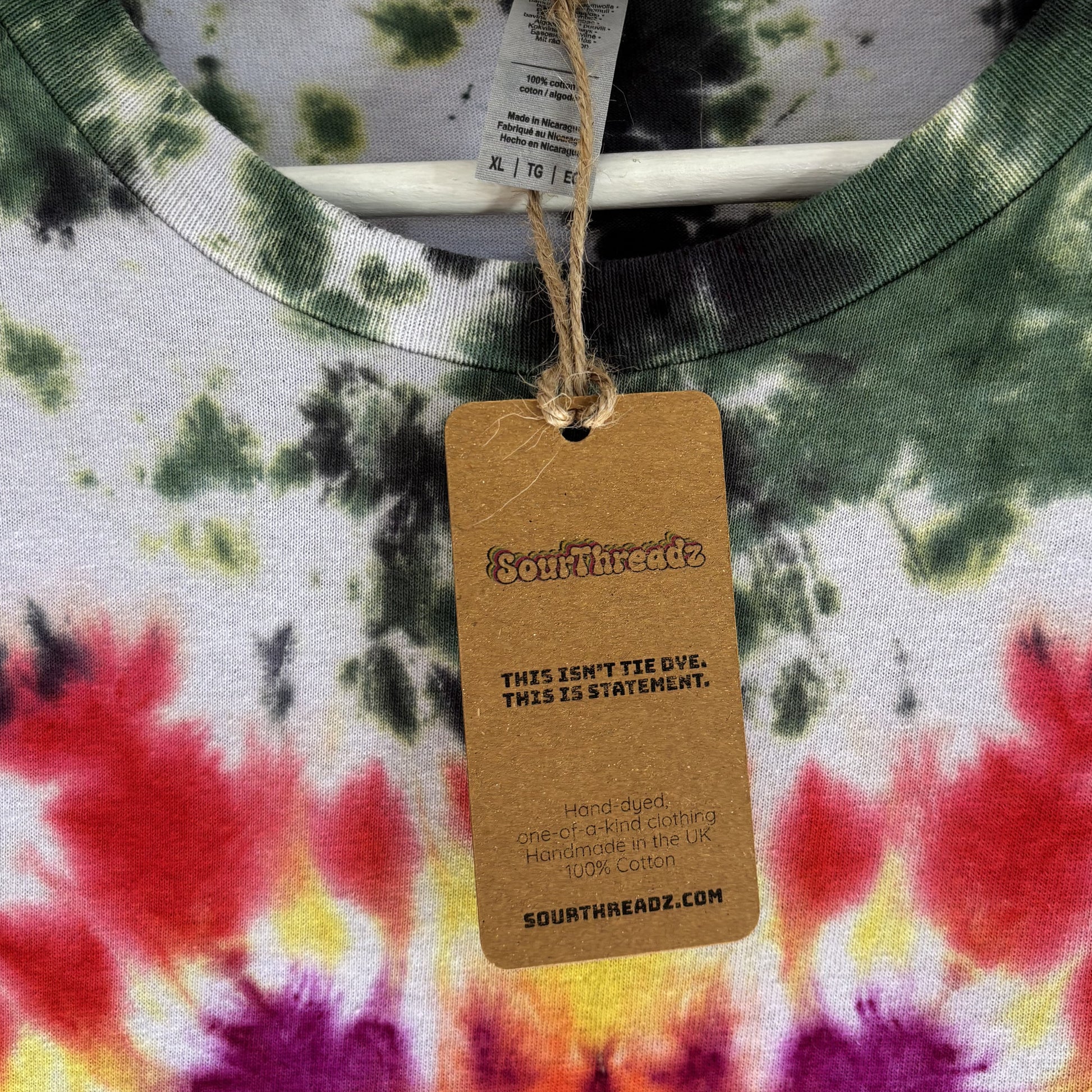 One-off SourThreadz T-Shirt  — Made with 100% cotton, bold, breathable, hand-dyed with fibre reactive dyes for ever-lasting vibrancy.Â