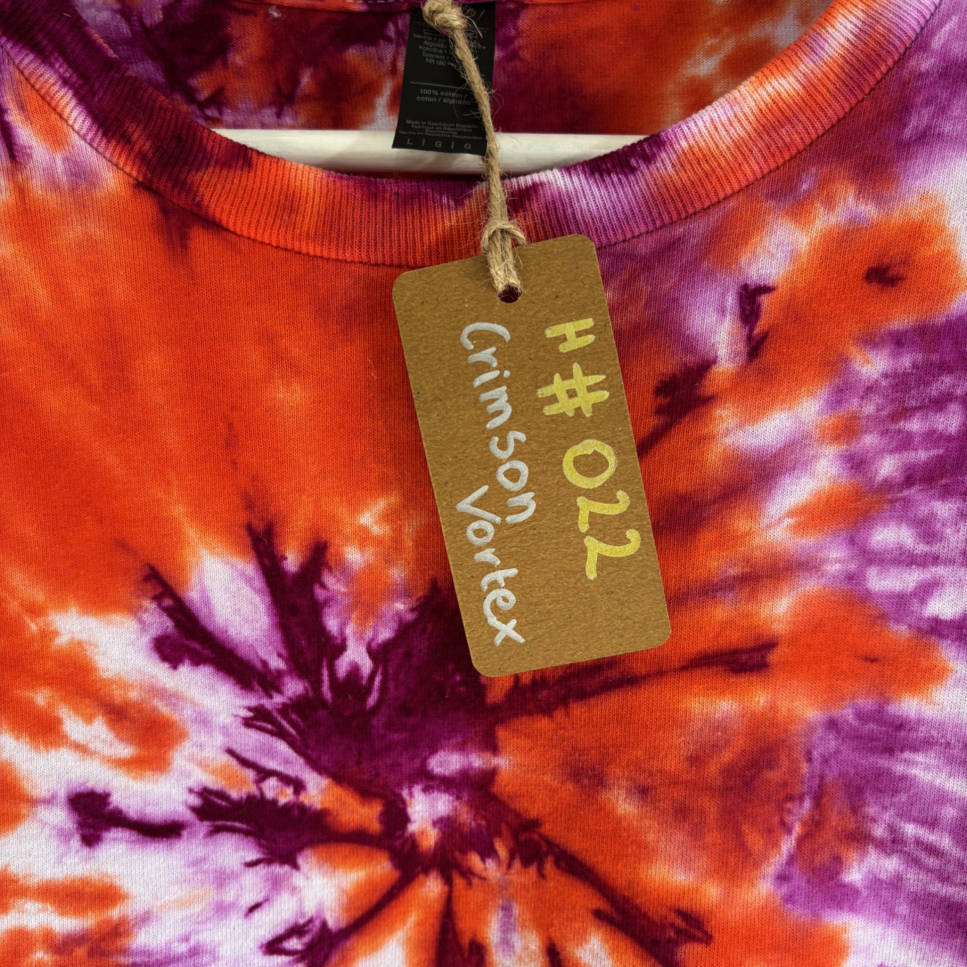 Crimson Vortex Spiral Tie-Dye T-shirt #022 Men's Unisex Large Heavy Cotton