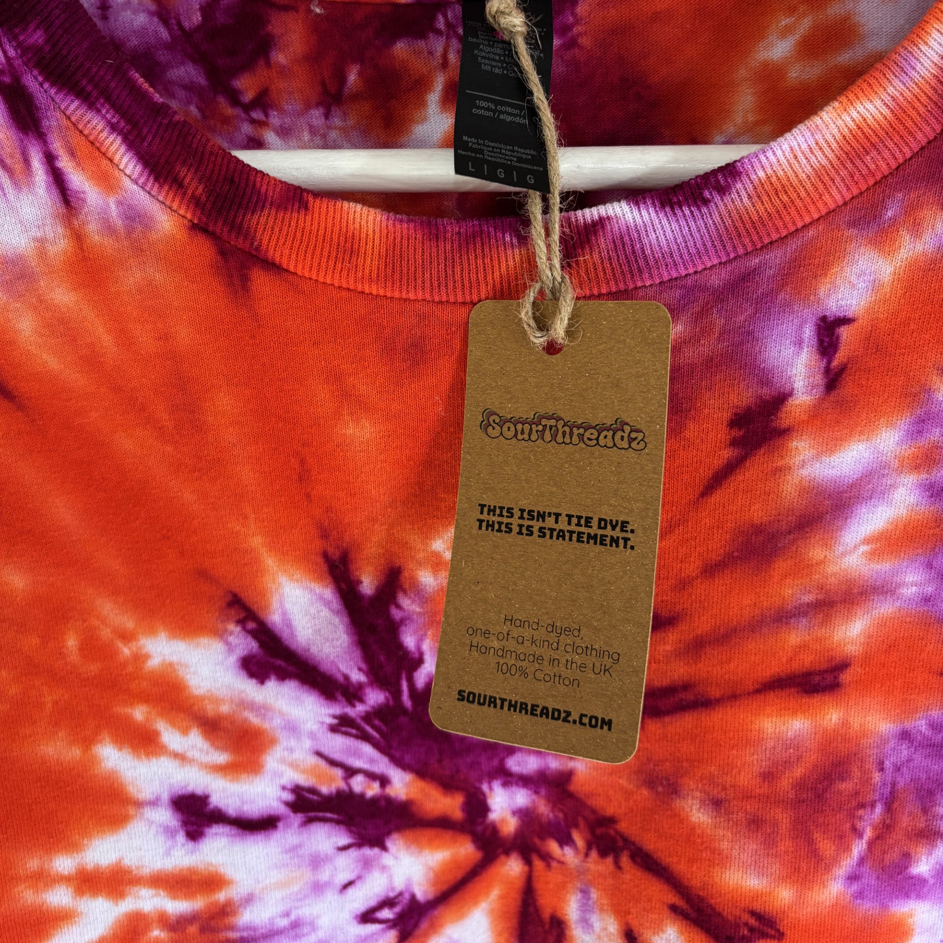 One-off SourThreadz T-Shirt  — Made with 100% cotton, bold, breathable, hand-dyed with fibre reactive dyes for ever-lasting vibrancy.Â